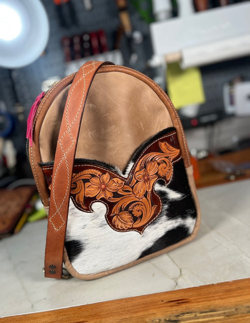 Cowhide Sling Backpack with Hand-Tooled Boot Top Accent