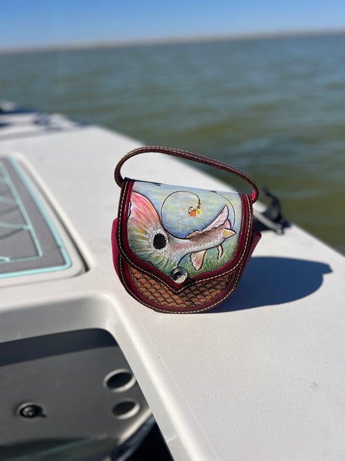 Hand-Painted Fly Reel Case with Handle - 5" Diameter